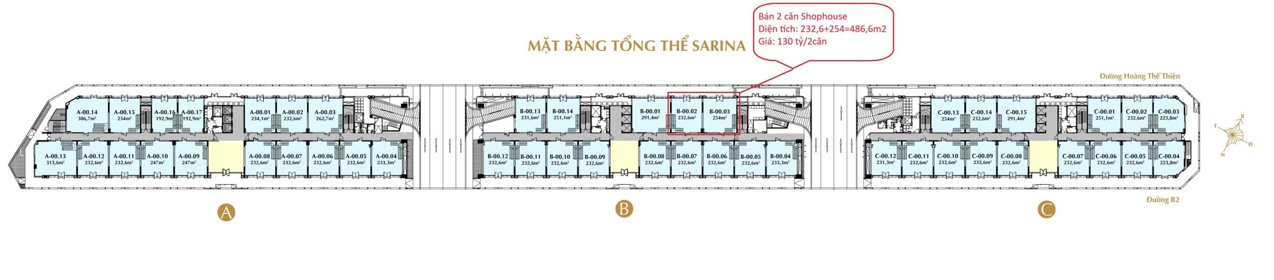 Tọa lạc ngay mặt tiền số 62 Hoàng Thế Thiện – trục thương mại trung tâm của khu đô thị Sala, Thủ Thiêm – hai căn shophouse Sarina mã B-00.02 và B-00.03 sở hữu vị trí lõi hiếm có, nơi tập trung cộng đồng cư dân cao cấp và lưu lượng di chuyển ổn định mỗi ngày.