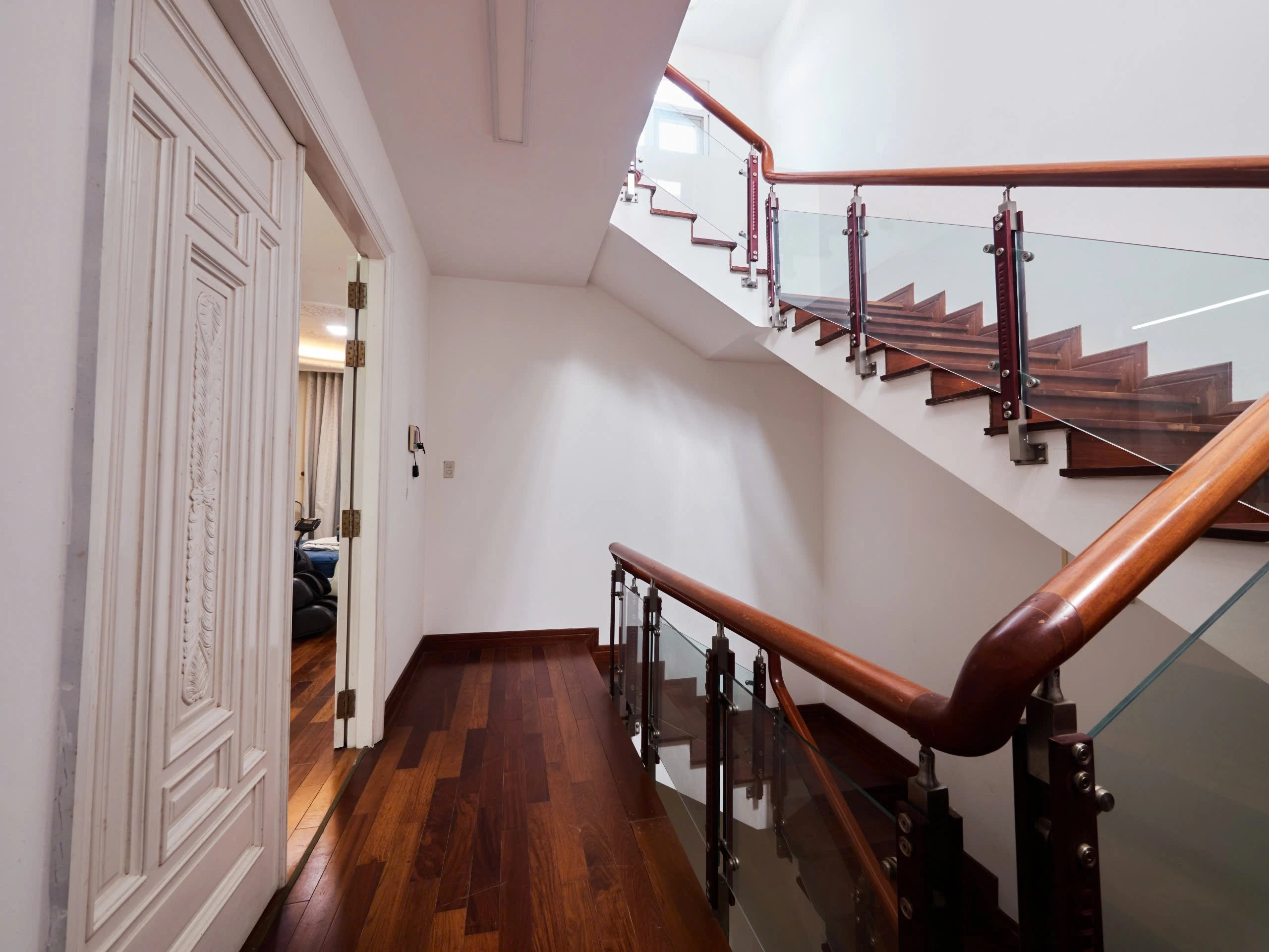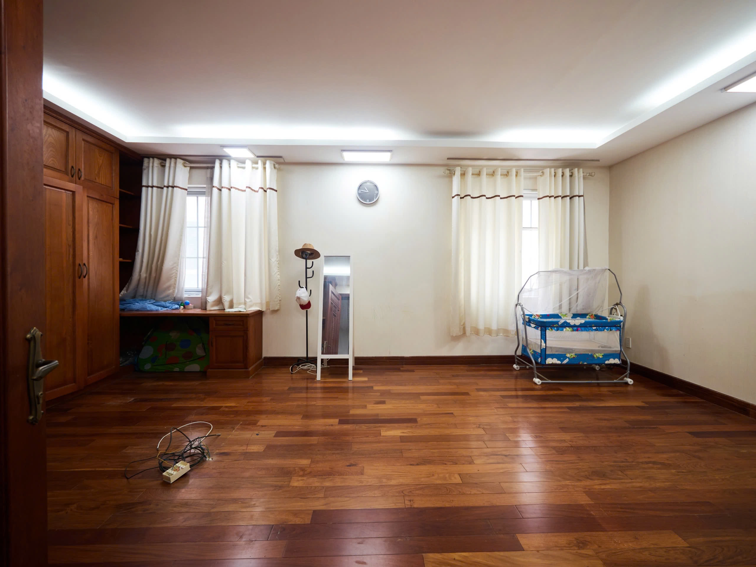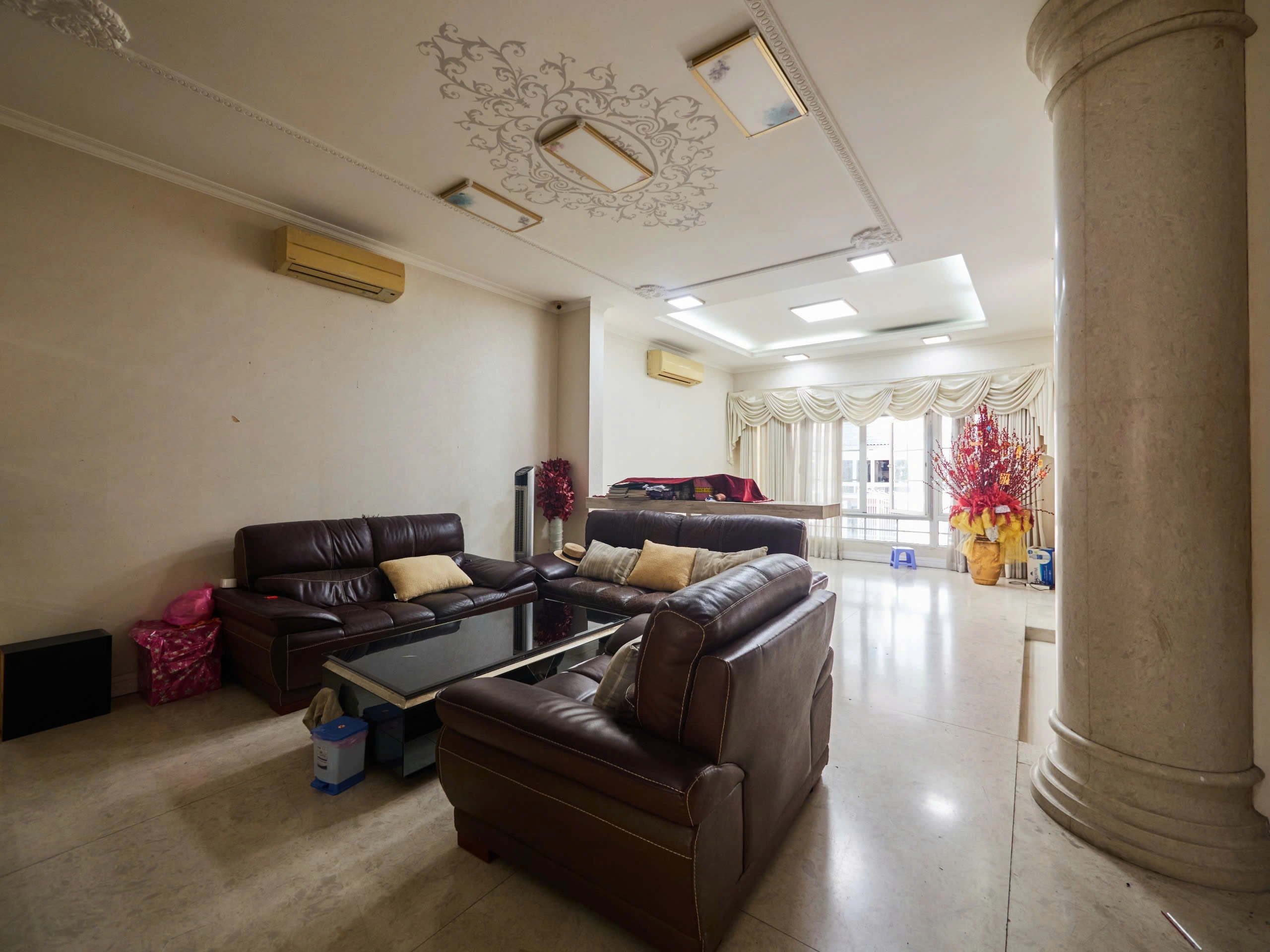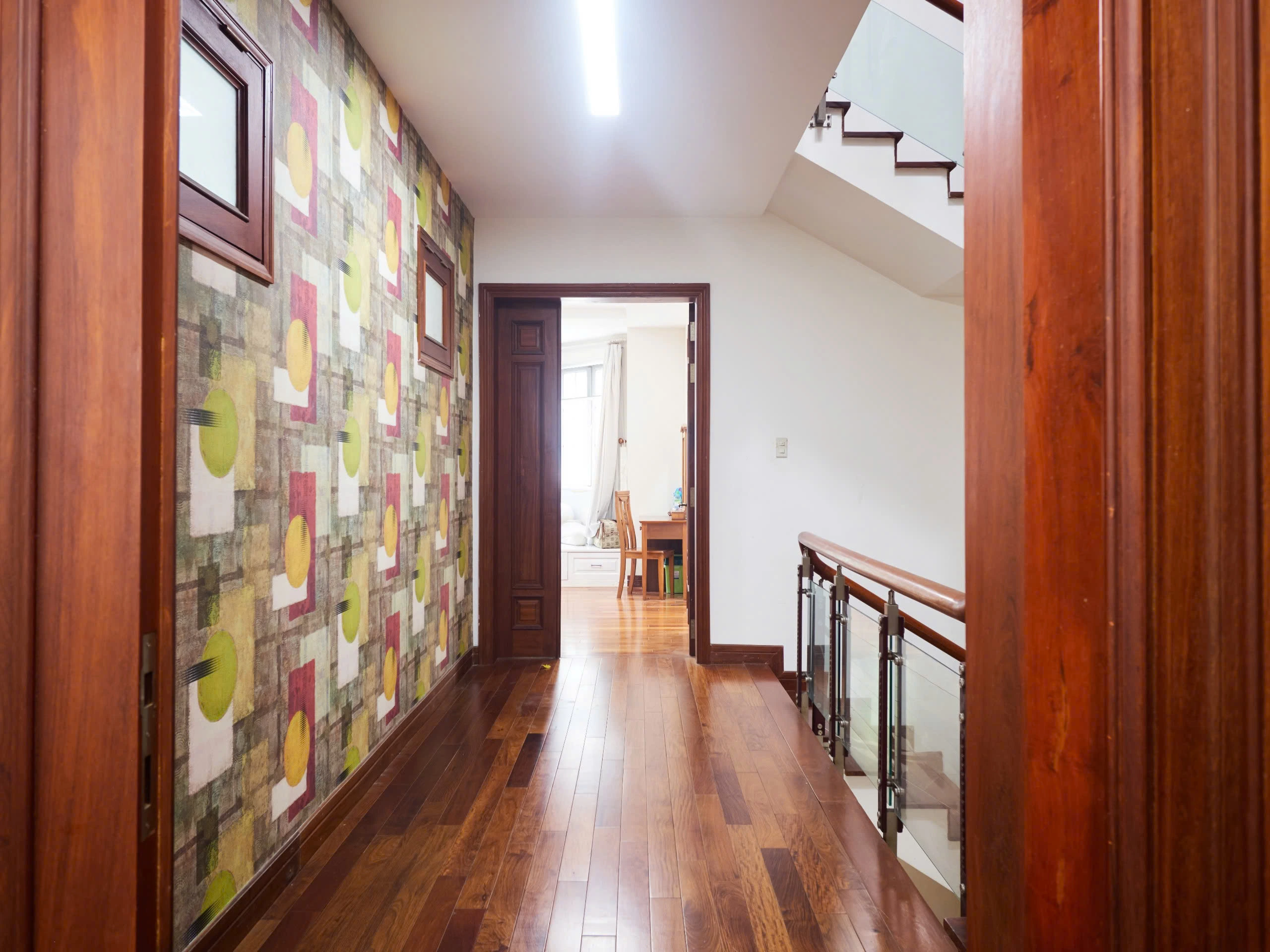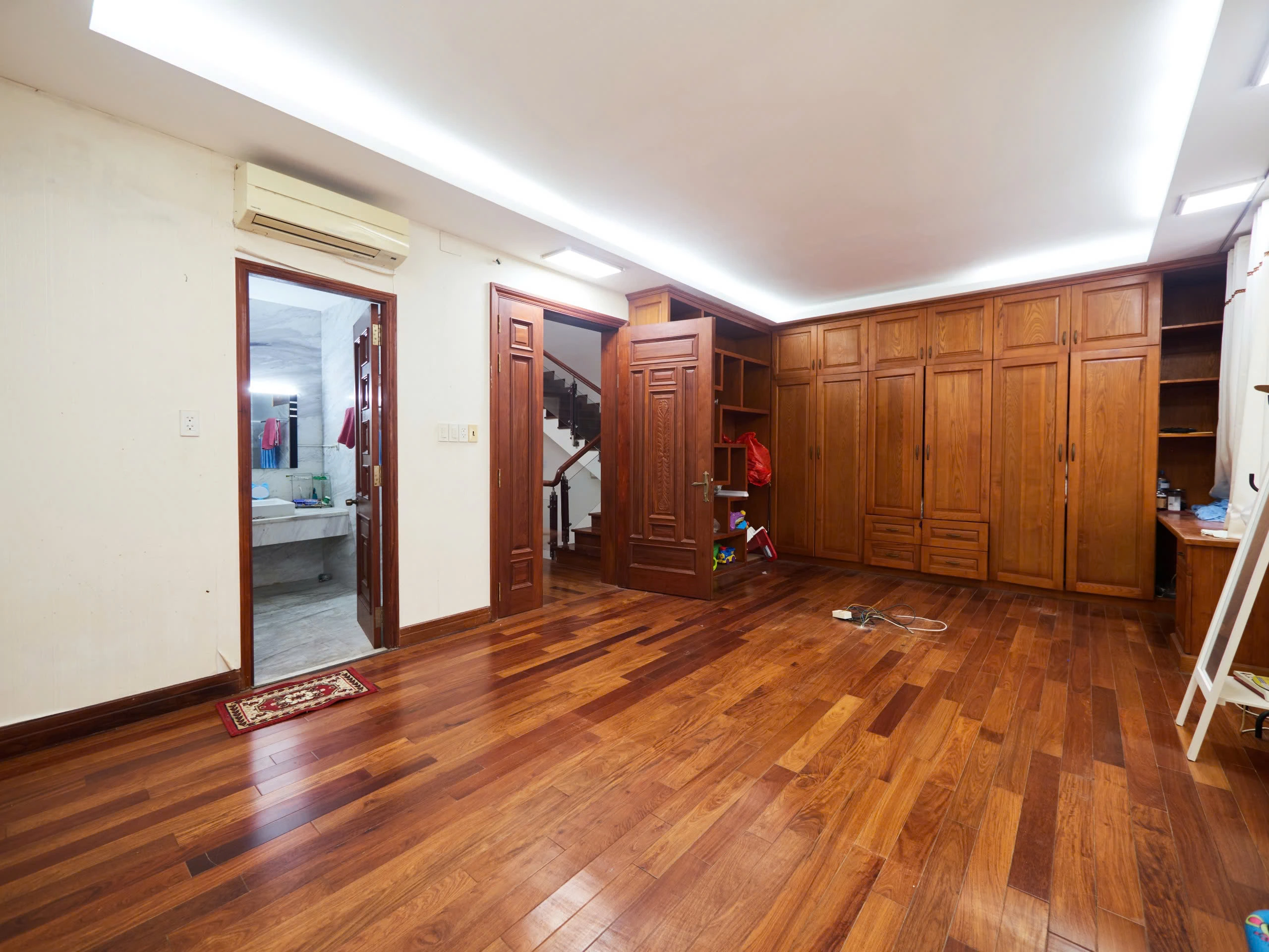 Biệt thự được xây dựng trên quỹ đất rộng, kết cấu nhiều tầng kiên cố với hệ phòng ngủ khép kín, khu sinh hoạt riêng và không gian bếp – ăn tách biệt. Nội thất hoàn thiện với sàn gỗ tự nhiên, hệ tủ âm tường đồng bộ và phòng tắm ốp đá marble sáng màu, tạo nên tổng thể trang nhã và bền vững theo thời gian.